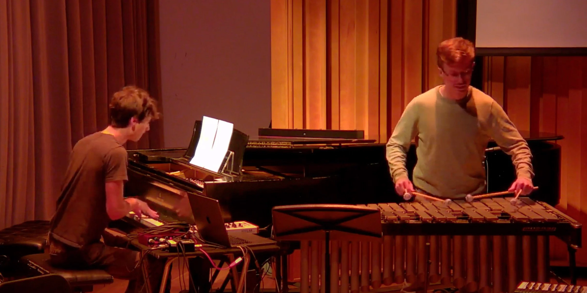 and the second half of the piece is accompanied by the playback of this recording in reverse, creating
